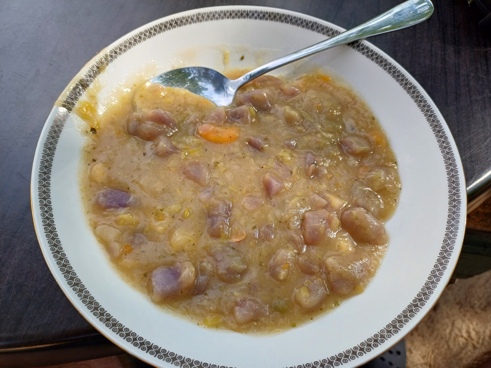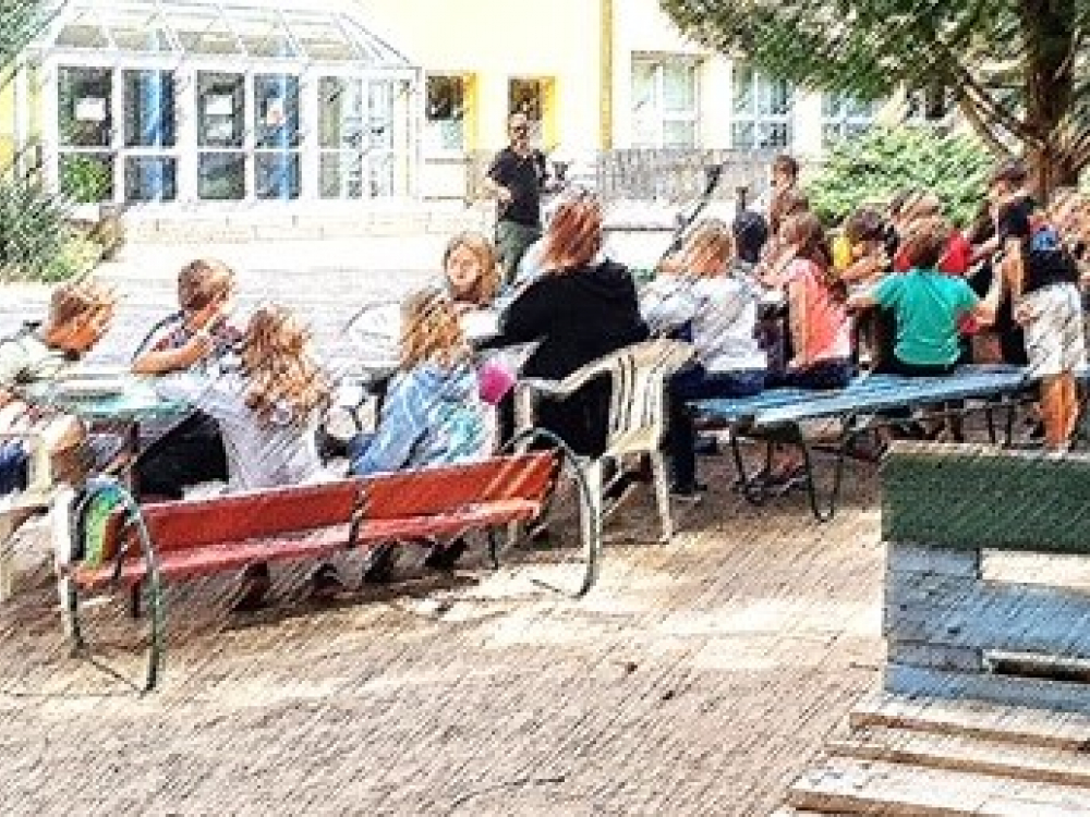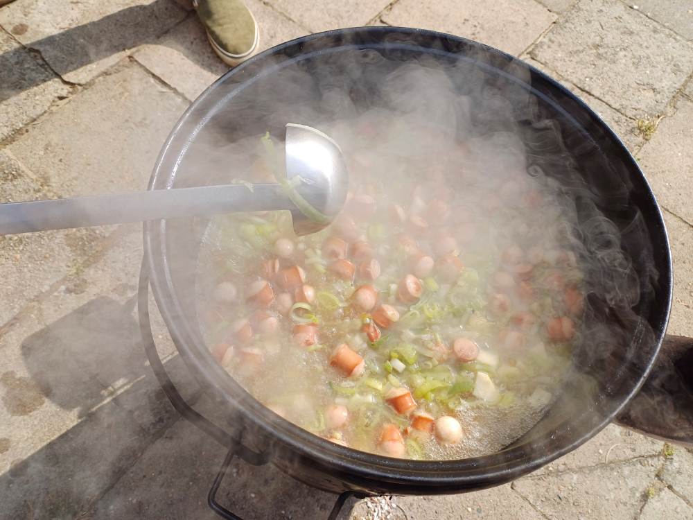 Auf unserem Hortgelände haben wir aus den blauen Kartoffeln, die wir in unserem eigenen Hortgarten geerntet haben, eine leckere Kartoffelsuppe zubereitet. Einige Kinder unterstützten tatkräftig beim Schälen der Kartoffeln sowie beim Schneiden von Würstchen und Gemüse. Unsere Kollegen kochten die Suppe draußen in unserer Mini-Gulaschkanone. Anschließend genossen wir die gemeinsam zubereitete Mahlzeit im Schatten auf dem Hortgelände.