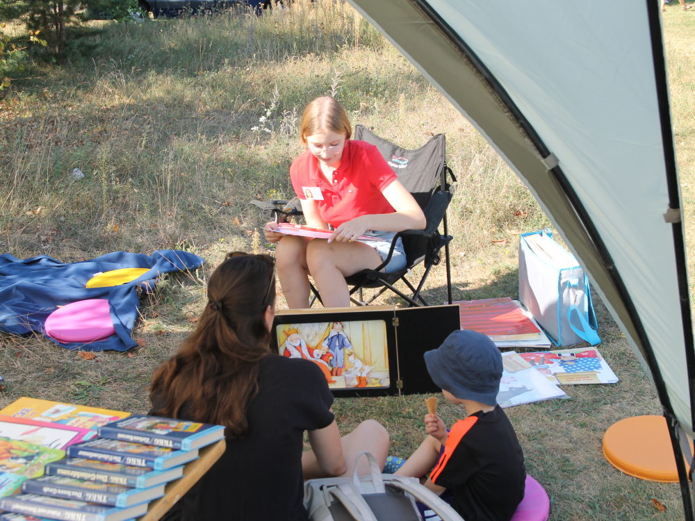 Auch in diesem Jahr präsentierte sich der Hort „Kunterbunt“ beim Tag des Kindes auf dem SEP-Gelände in Strausberg mit einer Bibliothek, Vorlesestation, Detektivspielen und Entenangeln, bei dem alle Altersgruppen Spaß hatten.