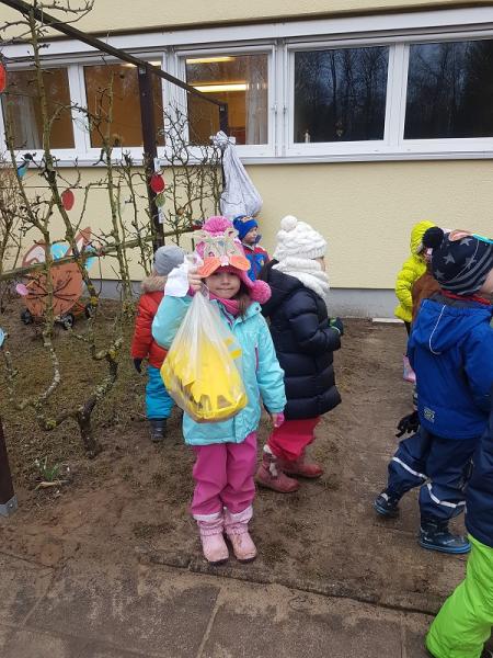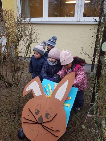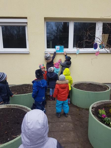 Die Kinder der Mäuse-, Spatzen- und Hasengruppe konnten es nicht abwarten bis der Osterhase endlich zu ihnen kommt, sodass sie sich selbst auf die Suche nach ihm gemacht haben. Dabei sind sie durch den Wald geschlichen und haben nach Spuren Ausschau gehalten. Doch das Glück war ihnen nicht hold und so sind die Kinder, mit hängenden Schultern, zurück zur Kita. Doch der Osterhase hat die Abwesenheit der Kinder genutzt und in aller Seelenruhe seine Nester versteckt. Ganz zur Freude der Kinder.
