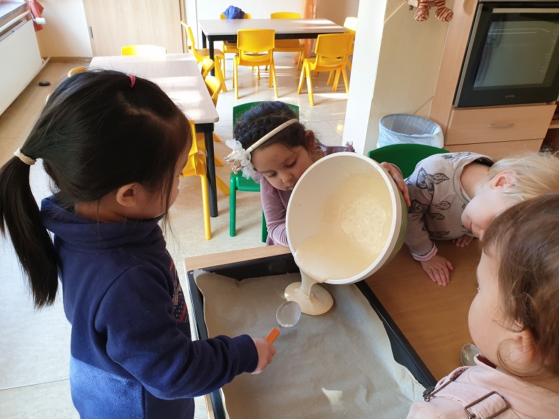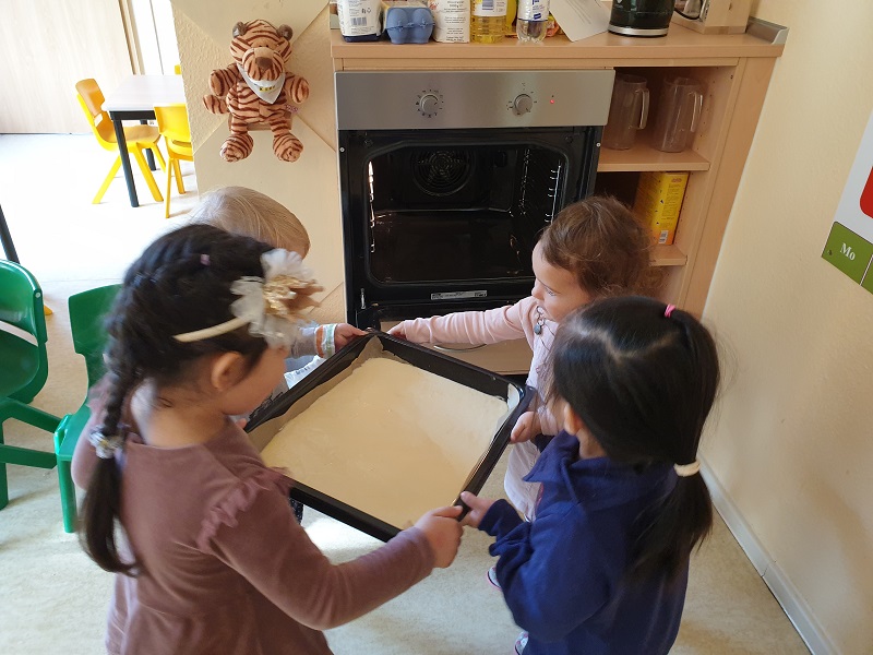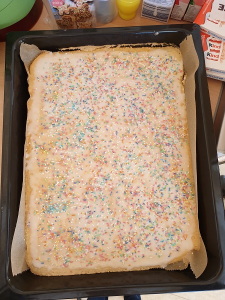 Es wird fleißig portioniert, gerührt und gebacken. Natürlich darf auch der Zuckerguss und die bunten Streusel nicht fehlen.