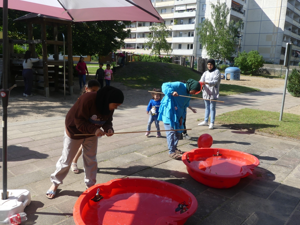 Der Familienspielenachmittag war eine wunderbare Gelegenheit mal wieder gemeinsam mit den Eltern und Geschwistern Zeit zu verbringen und Spaß zu haben. Wir spielten verschiedene Spiele, die für alle Altersgruppen geeignet waren und konnten so alle mit einbeziehen. Es gab Tischspiele, Angelspiele, Wurfspiele, ein Autoparcour, Buttons zum selbstgestalten, Sackhüpfen und vieles mehr. Die Atmosphäre war entspannt und fröhlich, es war schön zu sehen, wie alle miteinander gelacht haben.