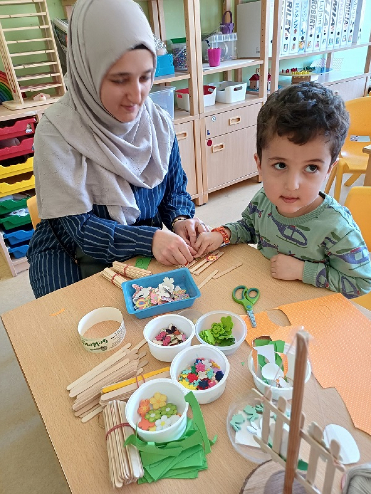 An verschiedenen Stationen konnten Eltern, Kinder, Geschwister und Gäste basteln, malen oder einer Ostergeschichte lauschen.