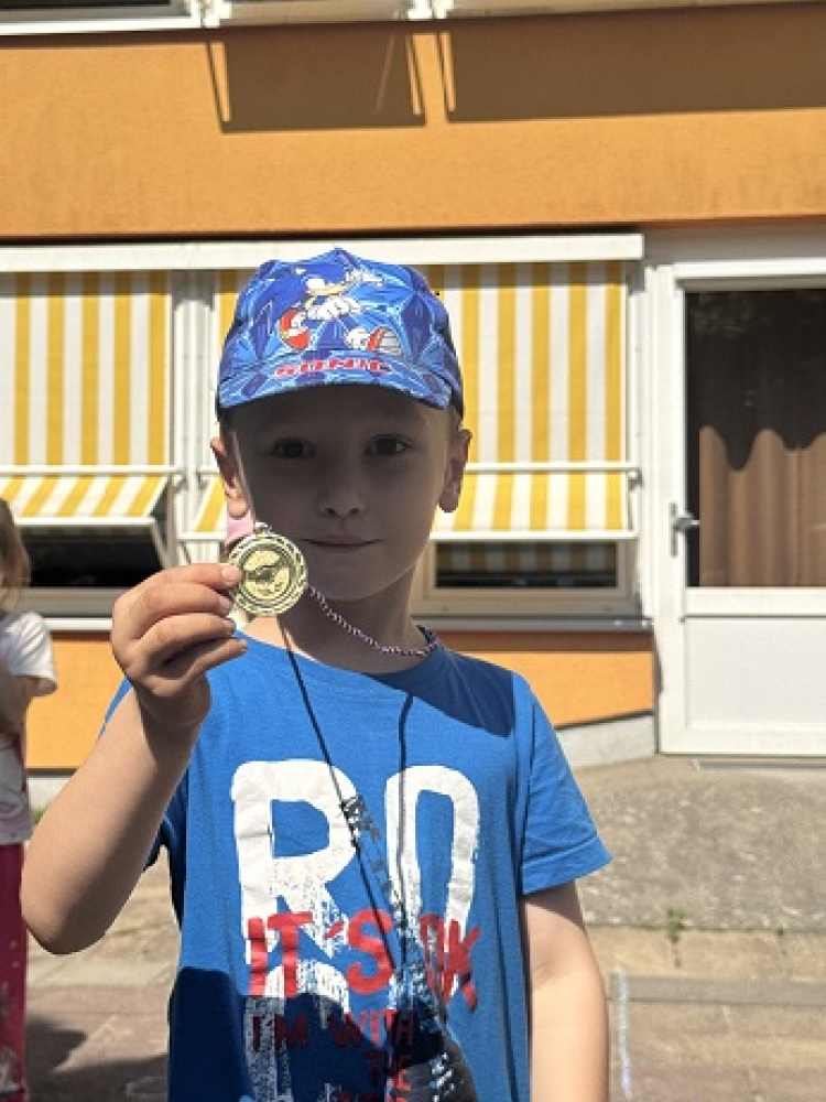 Heute haben die „Tausendfüßler“ ihr sportliches Können unter Beweis gestellt. In verschiedenen Disziplinen, wie Weitsprung, Weitwurf oder Sprint haben die Kinder gezeigt was in ihnen steckt. Mit viel Freude und Spaß waren alle dabei. Natürlich wurden die allerbesten auch ausgezeichnet.