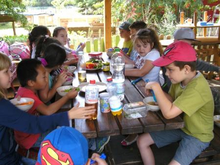 In der zweiten Woche haben wir eine Wanderung zum Aktivspielplatz unternommen und dort eine Gemüsesuppe am Lagerfeuer gekocht.