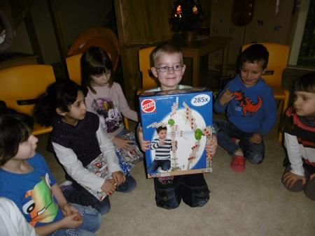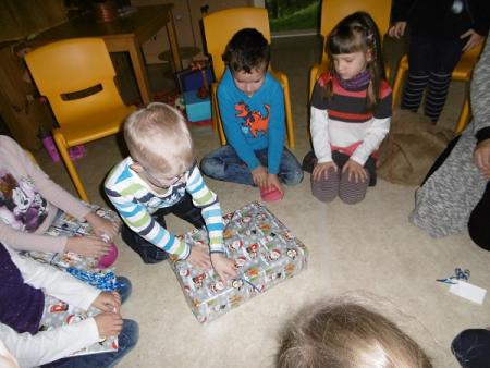 Heute ist es nun soweit, die Weihnachtsfeier steht bevor und alle sind schon ganz aufgeregt. Es wird getuschelt das der Weihnachtsmann heimlich unsere Kita besucht und uns, wenn wir alle ganz brav waren, auch einen Sack mit Geschenken da lässt. Die Erzieherinnen dürfen heute mal die Frau vom Weihnachtsmann sein und die vielen kleinen und großen Überraschungen an die Kinder verteilen.