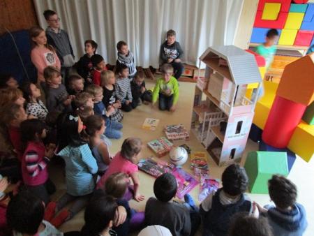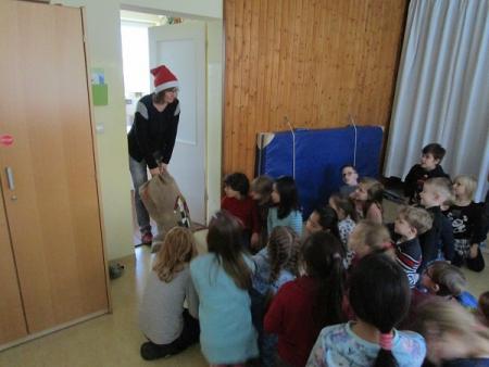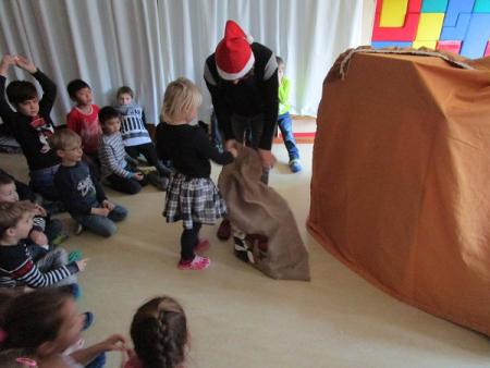Einen Sack voller Geschenke hat sie uns mitgebracht und die Spannung ist groß, was da wohl drin sein mag. Die Kinder geben Lieder und Gedichte zum Besten und dann ist die große Bescherung. Viele neue Spielsachen gab es für uns, die alle ausprobiert werden wollen.