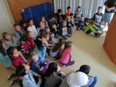 Im Hort ist es ganz still. Die Gruppenräume sind wie leer gefegt, dabei sind die Tische festlich gedeckt. Nur leises flüstern ist aus dem Sportraum zu hören, bis es plötzlich aus lauten Kehlen „In der Weihnachtsbäckerei“ erkling.