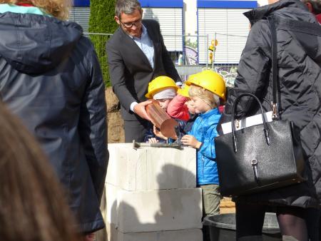 Aktuelles 12.10.2017 Grundsteinlegung wir waren dabei. Justus, Ella, Annelie und Luis haben gemeinsam mit Herrn Wegner-Repke die Zeit Kapsel versenkt. Vielen Dank an die SWG für neues Spielzeug .... zurück